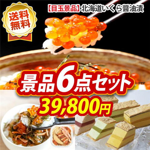 新年会景品6点セット【北海道いくら醤油漬け、ネスカフェ バリスタ 他】送料無料!特大パネル・目録・特典付き!ビンゴや二次会景品にも!