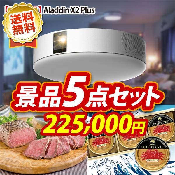 二次会景品5点セット【popIn Aladdin、北海道いくら醤油漬け 他】送料無料!特大パネル・目録・特典付き!ビンゴや忘年会景品にも!