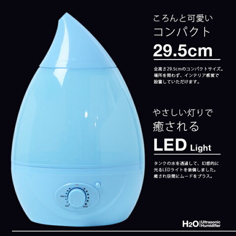 無断階ミスト量調節、アロマ対応、水がなくなったときの自動停止機能など、 必要十分な機能に加えて、青色インテリアライトも付けました。